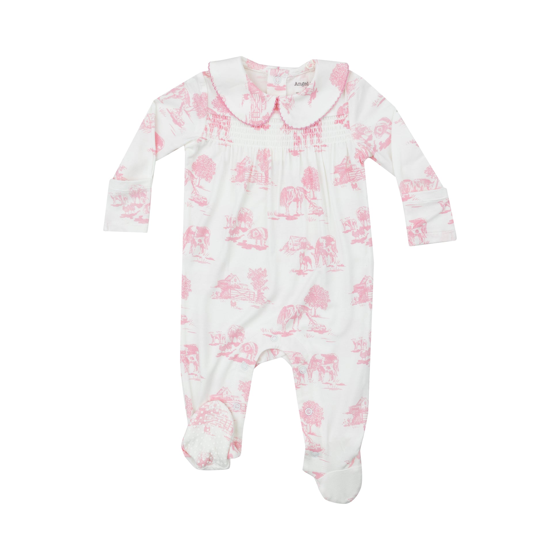 Angel Dear Farm Toile Pink Smocked Zipper Footie