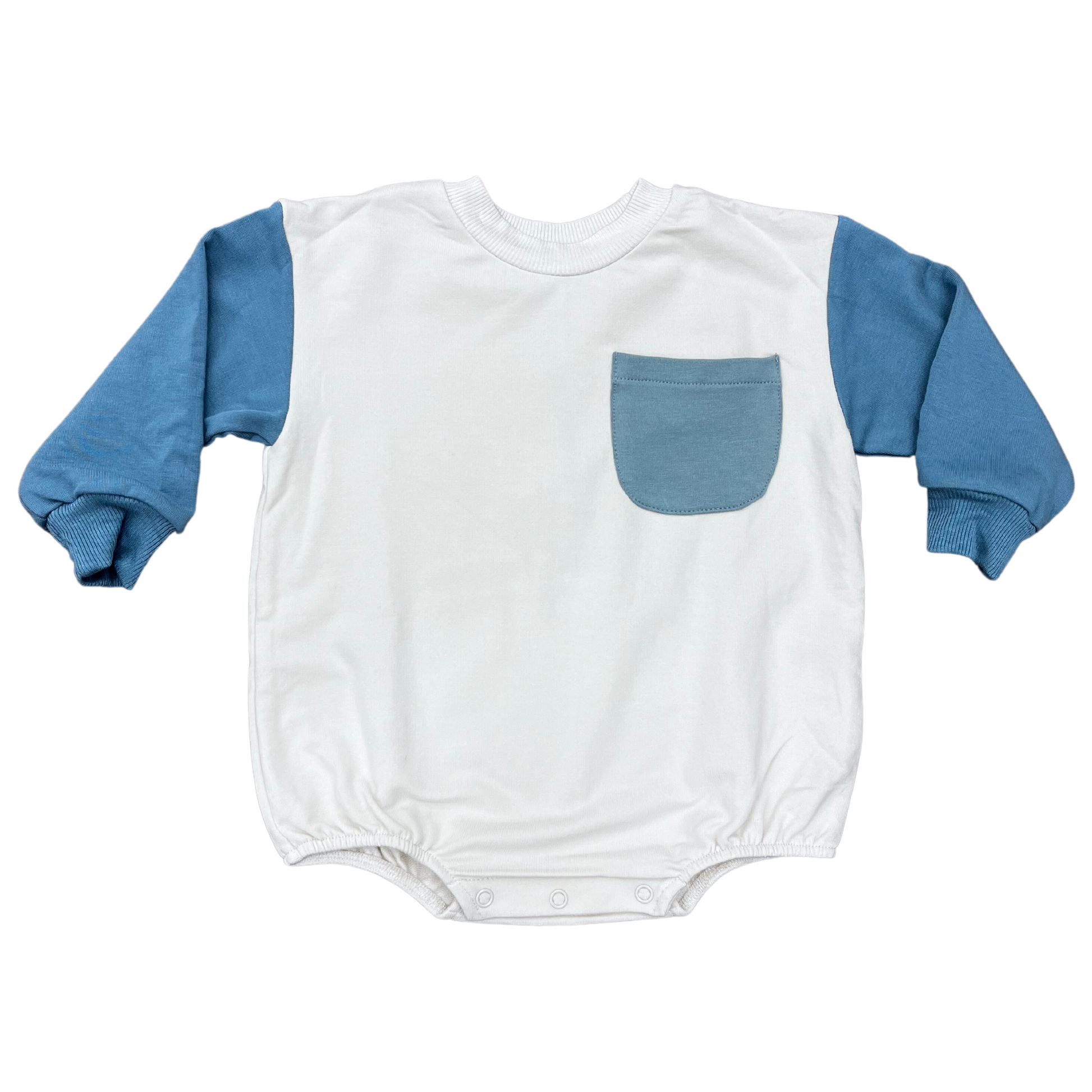 BabySprouts Baby Colorblock Romper in Stone Blue