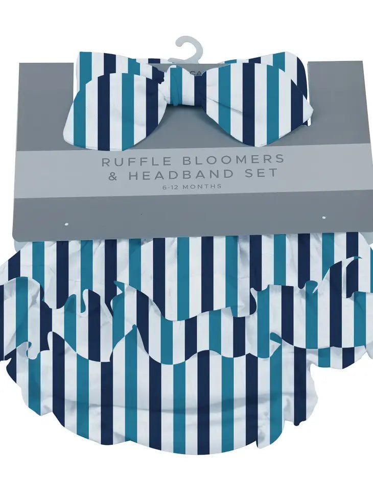 Blue & White Stripe Ruffle Bloomers and Headband Set