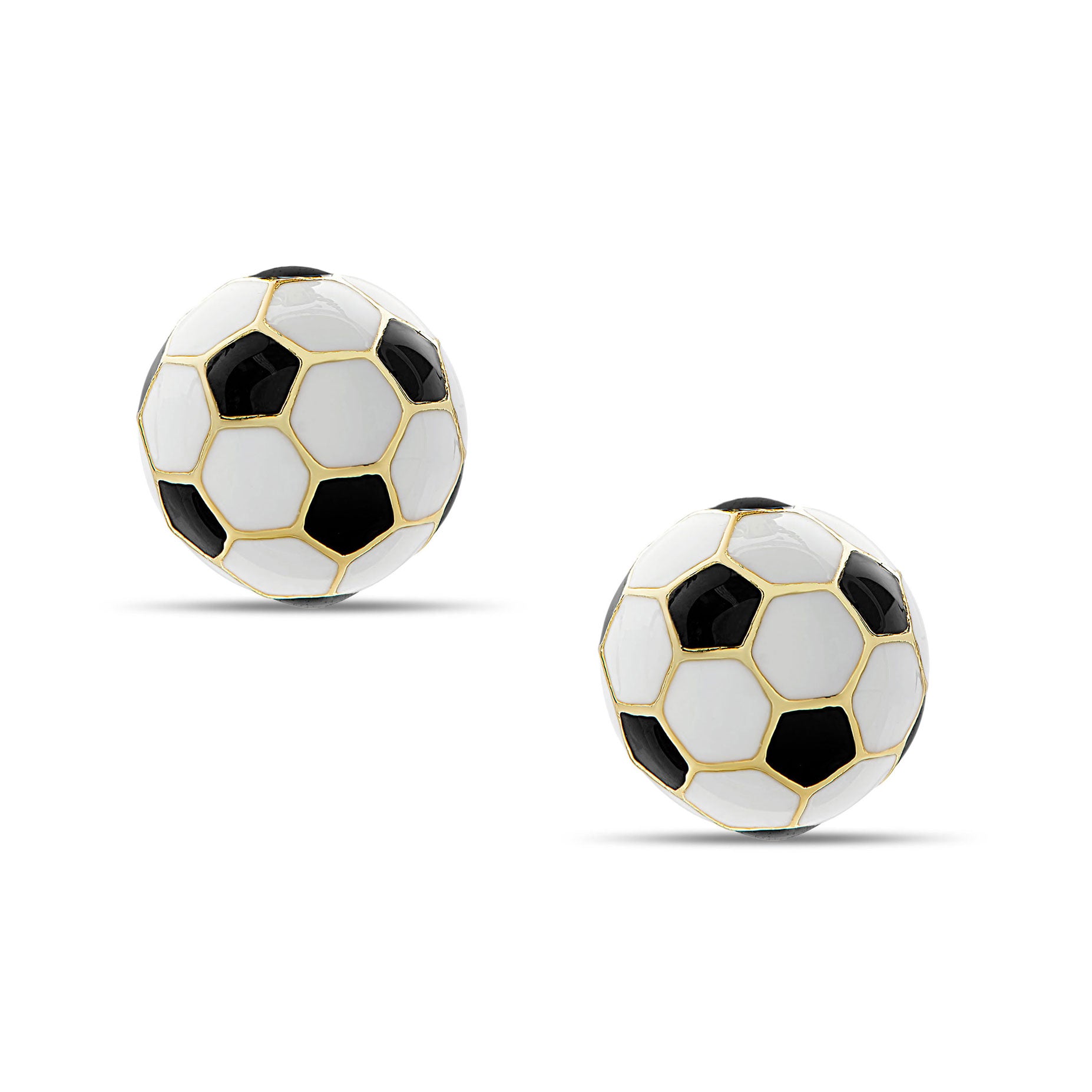 These beautiful stud earrings for girls feature a 3D soccer ball with hand-painted enamel. Earrings are 18k gold plated with a high-polish finish and secure with friction back clasps.