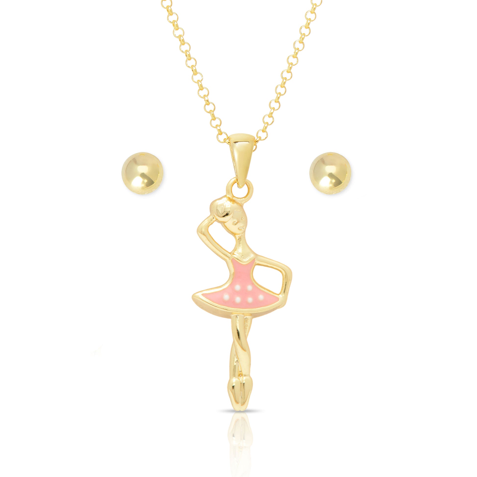 Lily Nily Ballerina Pendant & Ball Stud Earrings 18K over Sterling Silver