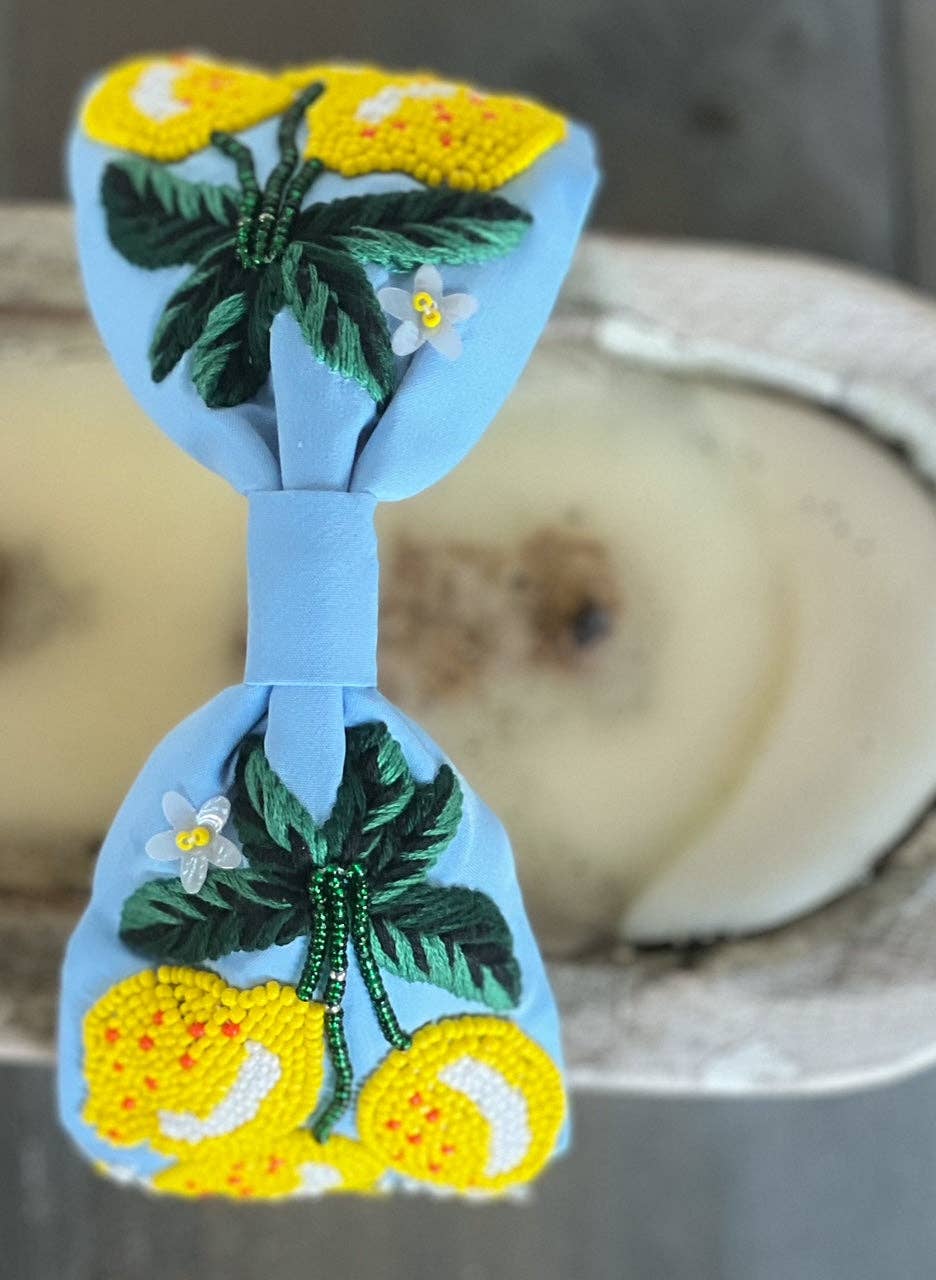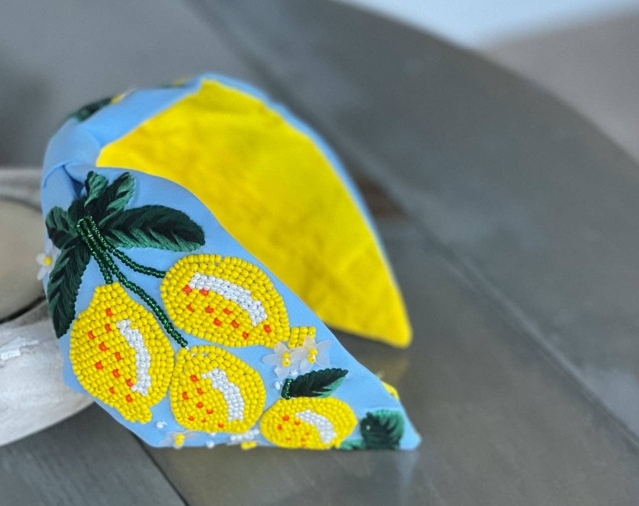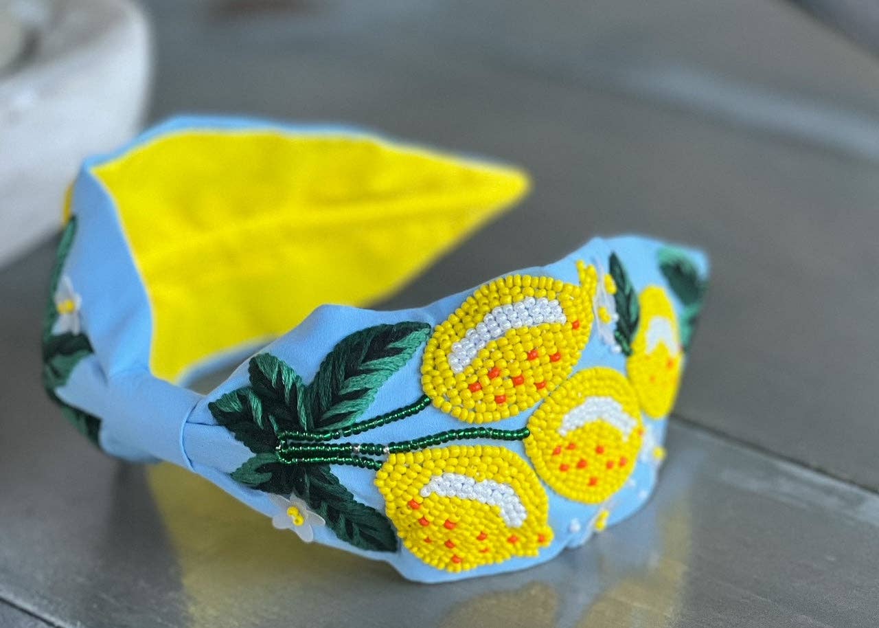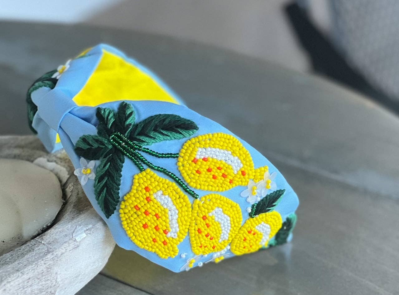 Lemons and Flowers Seed Beaded Top Knot Headband