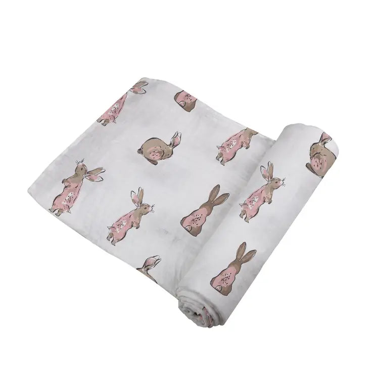 Powder Pink Bunnies Swaddle Blanket