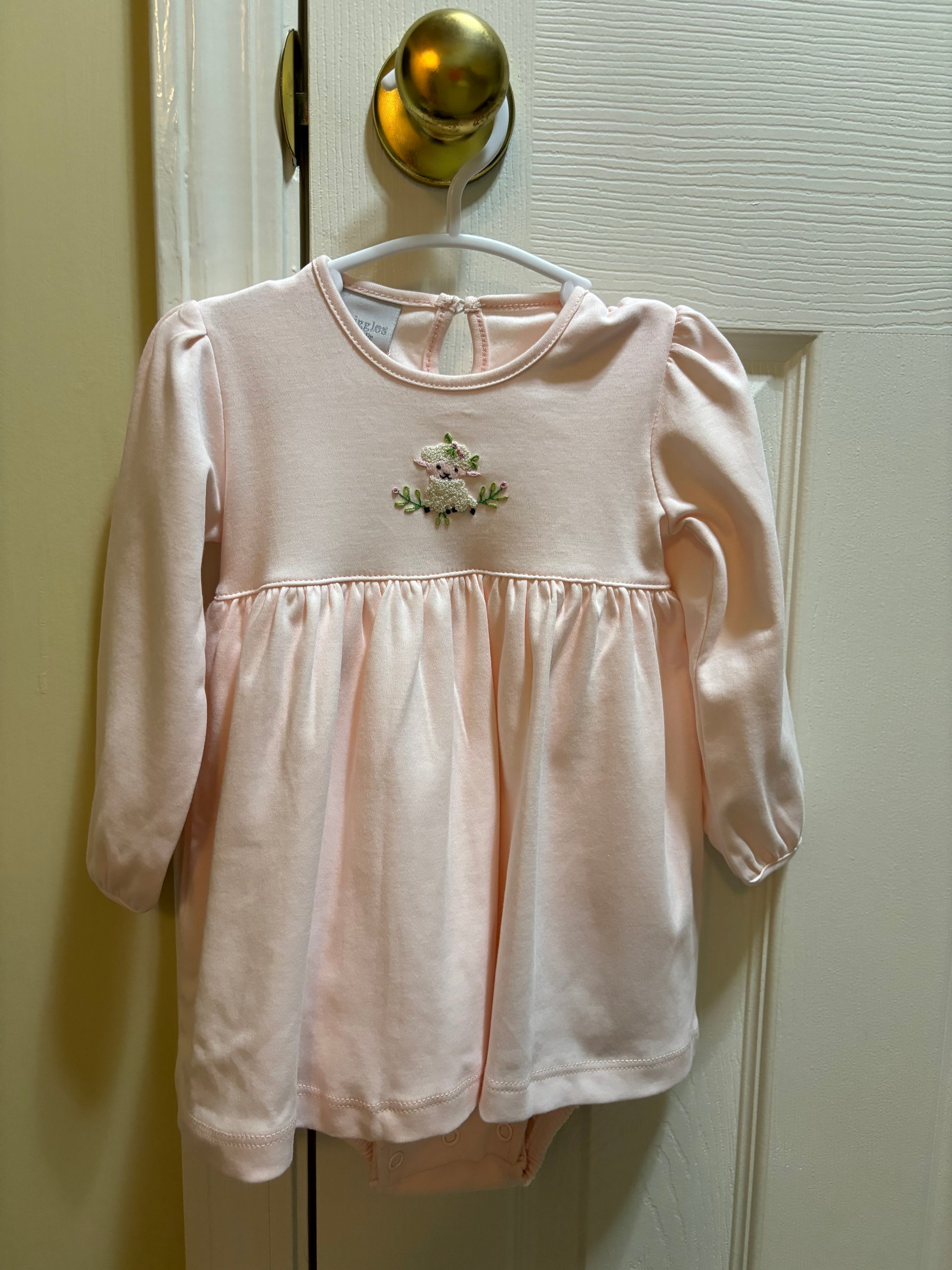 Squiggles Pale Pink Lamb LS Onesie Dress