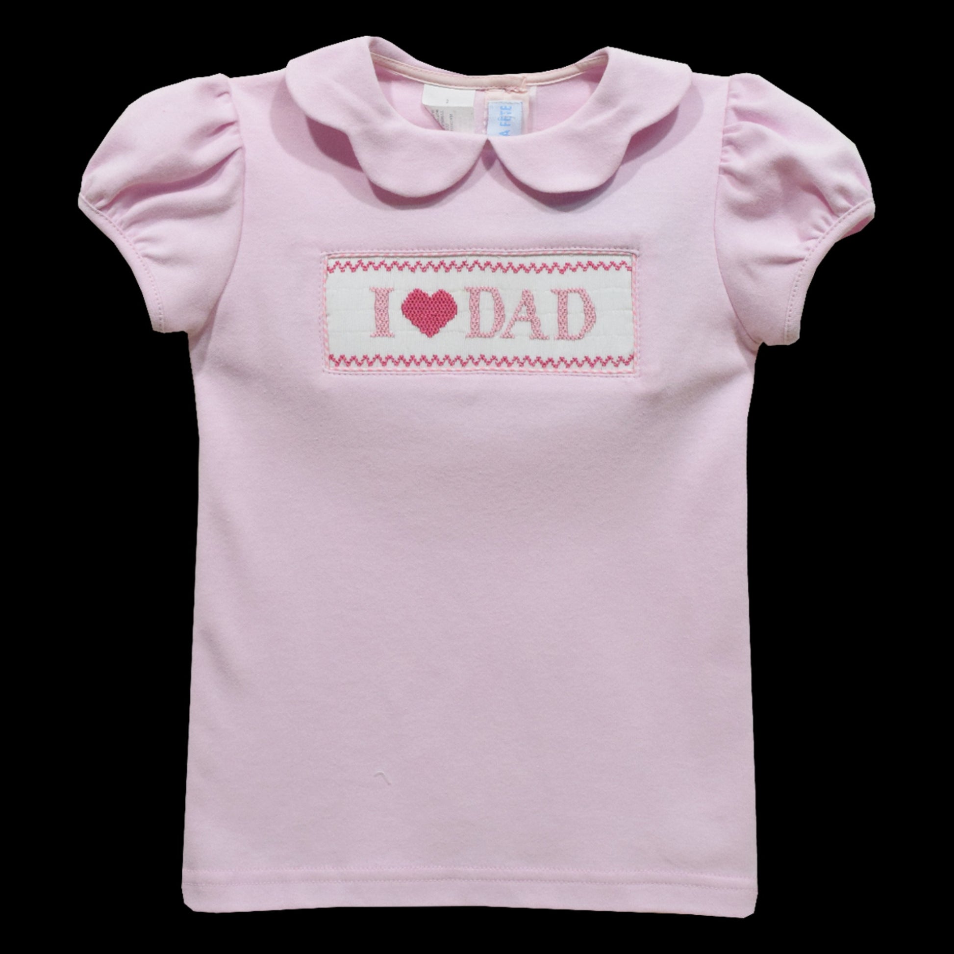 Viva La Fete I Love Dad Smocked Pink Knit Puff Sleeve