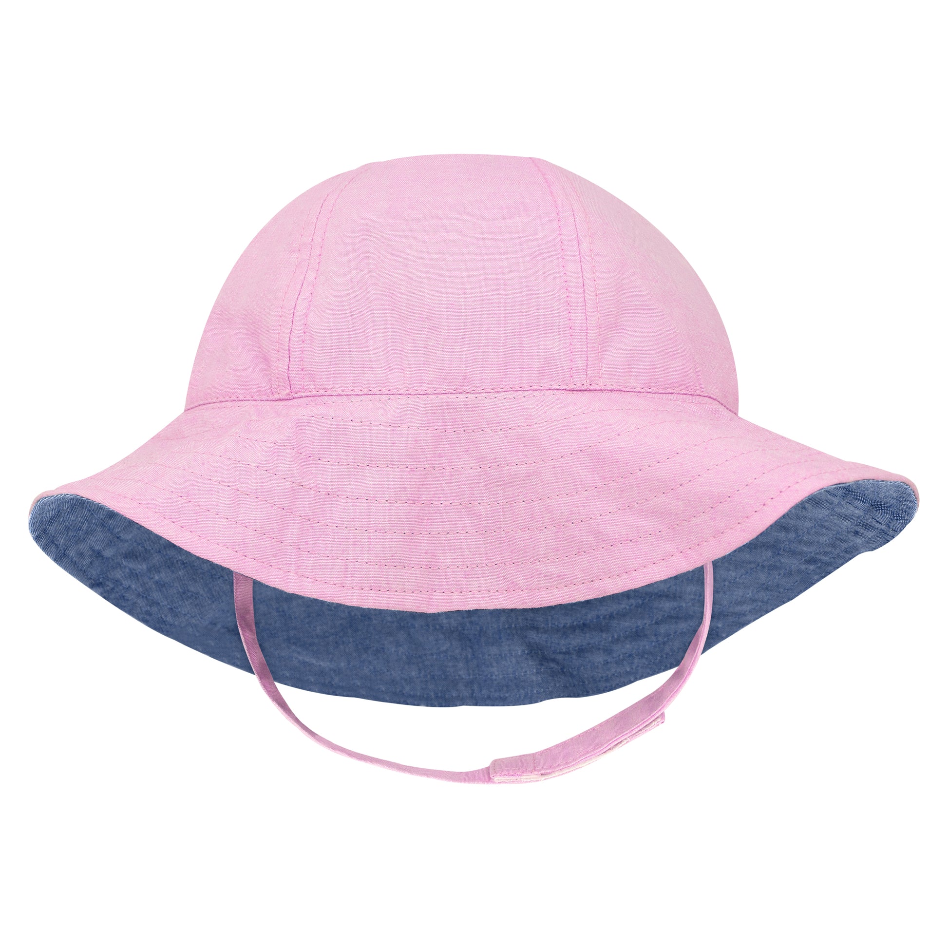 Wee Ones Girls Reversible Floppy Brim Pink Chambray Sun Hat