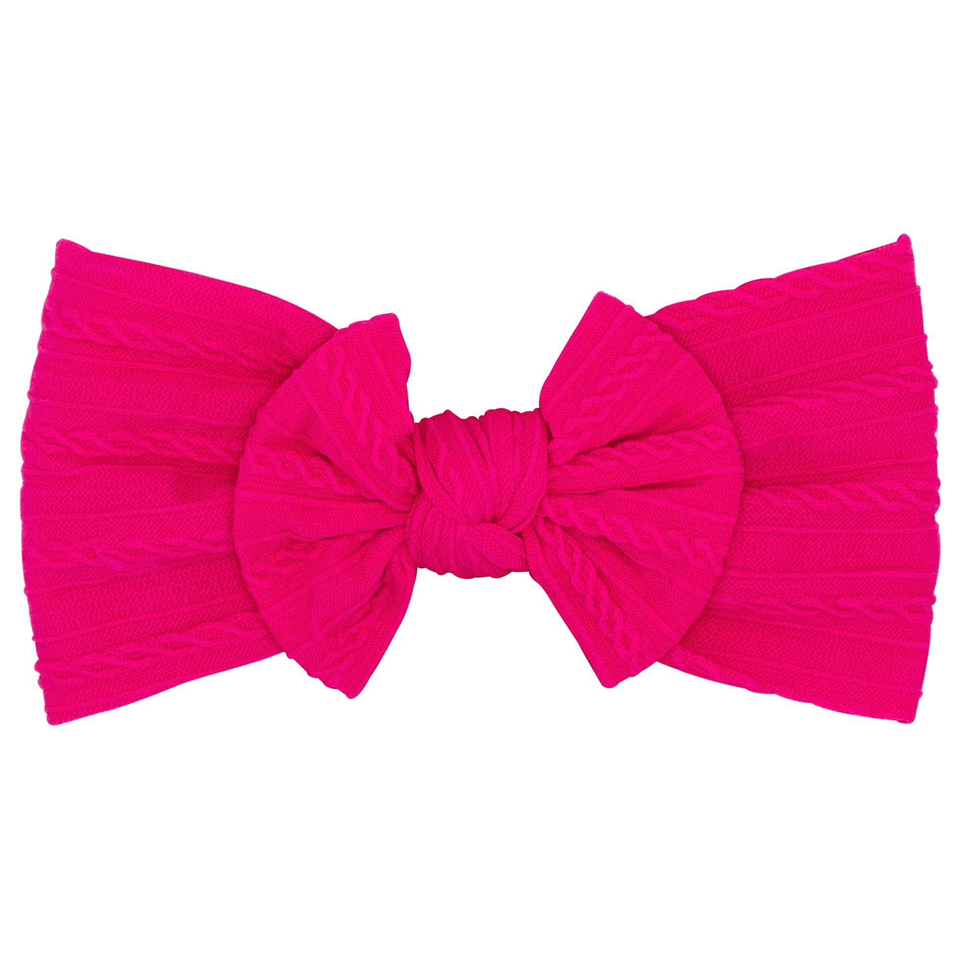 Soft cable knit nylon headband for infant and toddler girls with matching 4" bowtie.